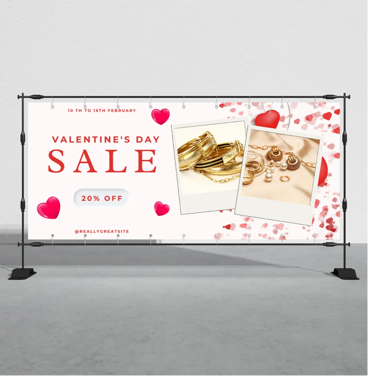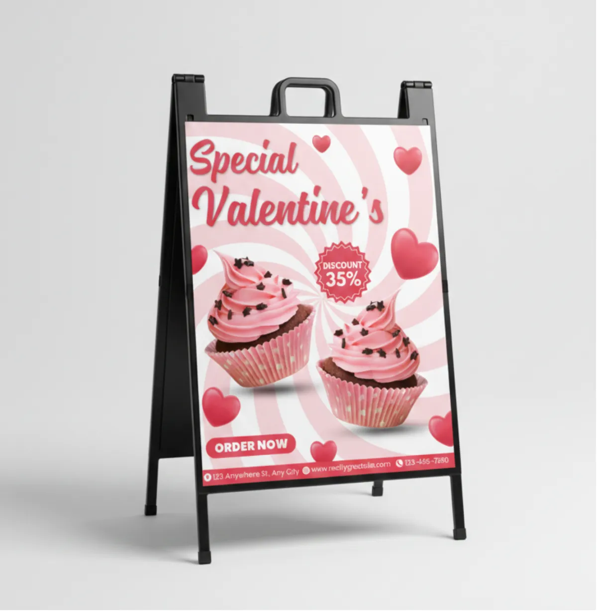 Get custom signage and displays ready for Valentine's gatherings, pop-ups, and company events.